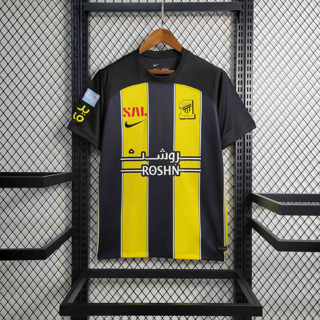 Camisa Al-Ittihad Home 2023/24 - Nike Torcedor Masculina - Amarela/Preta
